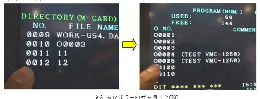 (3)查看存儲卡上的新程序。按功能鍵PROGRAM→擴展鍵【?】→【CARD】, 看到DIRECTORY(M-CARD)頁面,輸出成功,如圖2所示。
