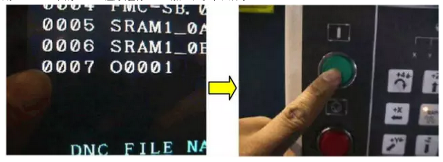 (2)選擇待加工程序。鍵入7(即文件號)→【DNC-ST】,此時 DNC FILENAME變成O0001;